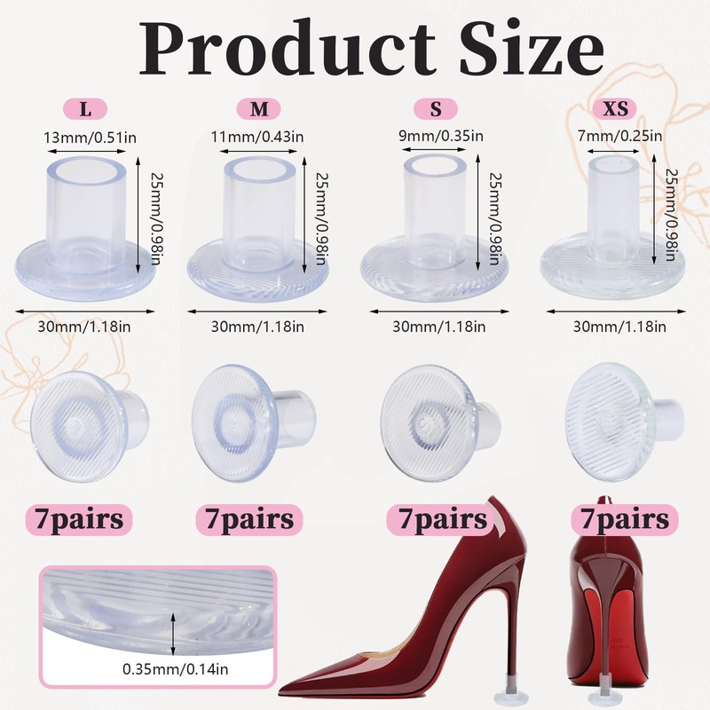 - Product Size: Designed to fit most heel caps for high heels, these protectors come in XS, S, M and L sizes to accommodate heel tips ranging from it. Universal-fit options are also available for versatility.