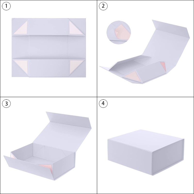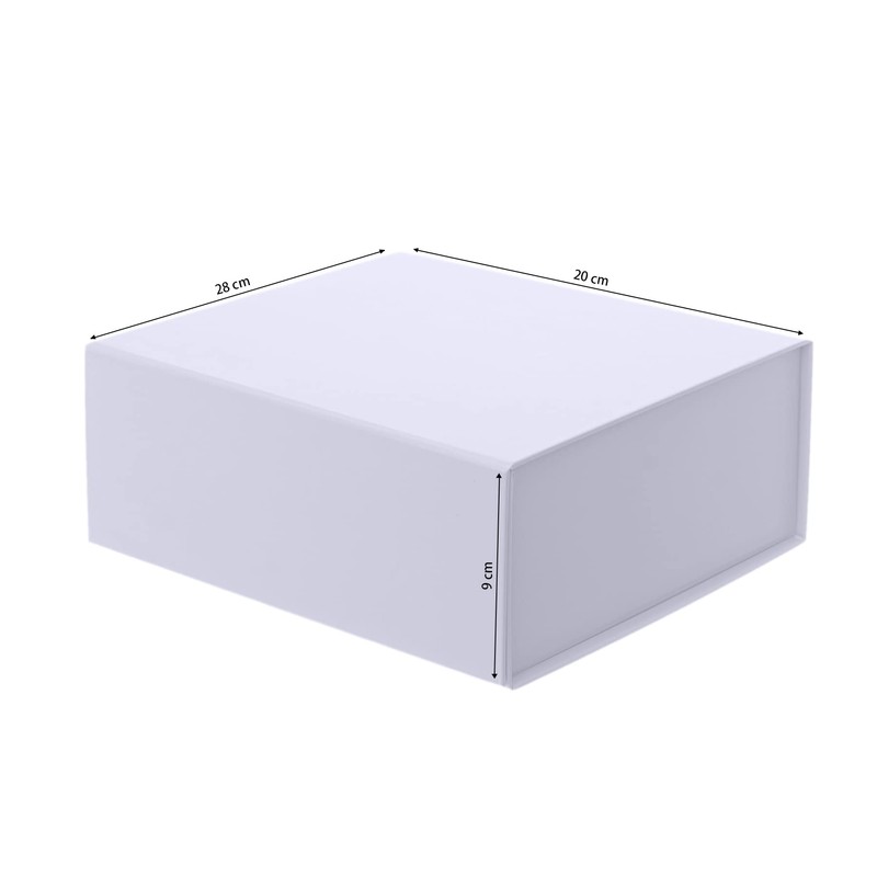- The gift boxes are sent flat assembled boxes, size: 28 x 20 x 9 cm, heavy duty bookboard construction with matte paper over packaging inside and outside.
