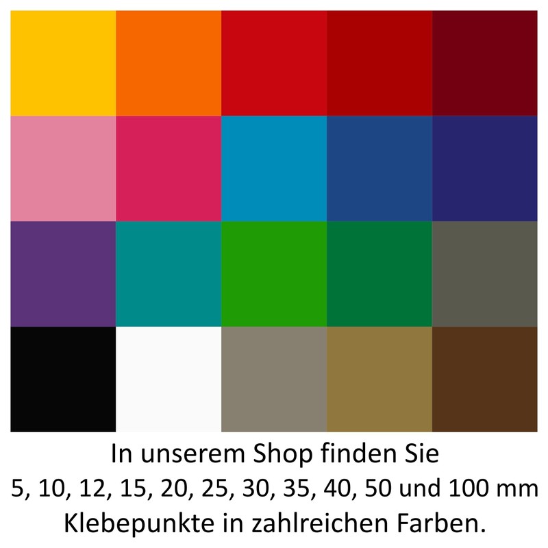 In unserem Shop finden Sie die Markierungspunke auch in weiteren Farben und Größen.