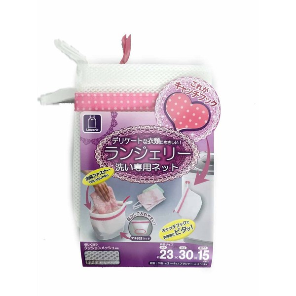 創和 洗濯ネット ランジェリー洗い専用ネット(キャッチフック付) 約横28x縦24x底マチ15cm 白