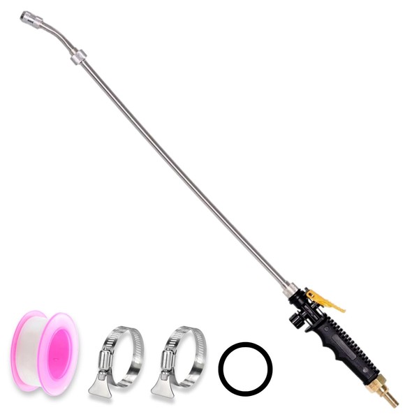 • 🚿 Great Accessories: Sprayer wand comes with 2 stainless hose clamps and a teflon tape that help attach to the hose, a brass barb fits 3/8'' hose for different applications, is not easy to rust, incredibly robust and sturdy!