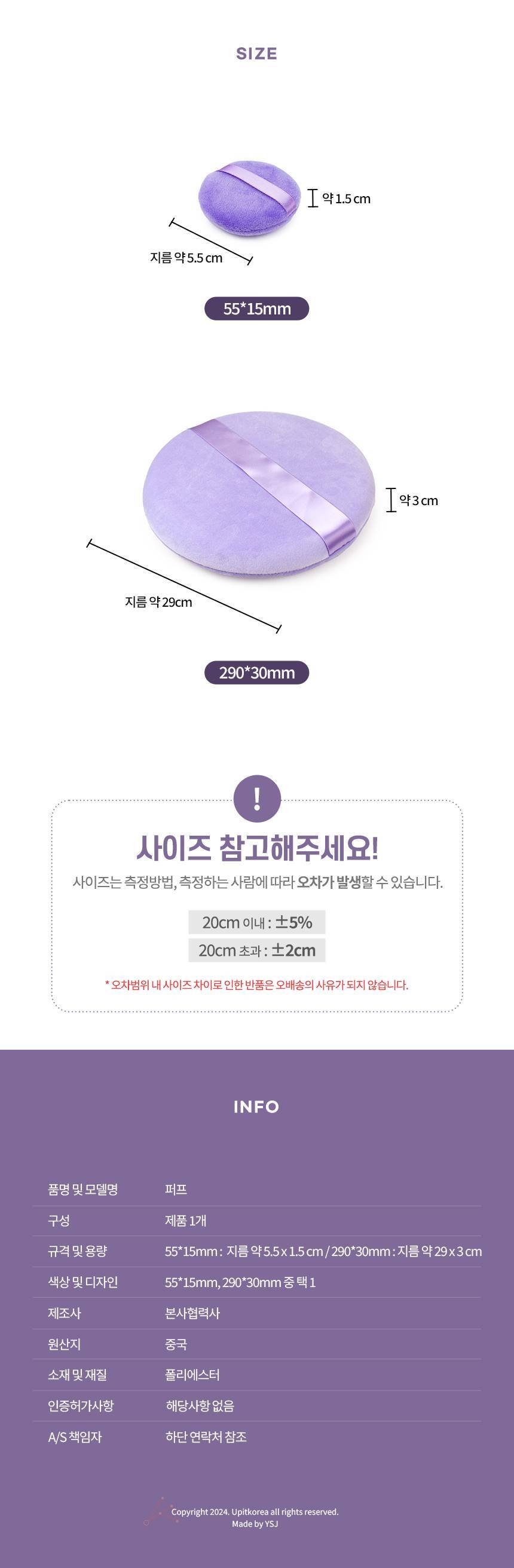 290*30mm Multi-purpose Round Powder Makeup Puff for Compacts 290*30mm 2ea