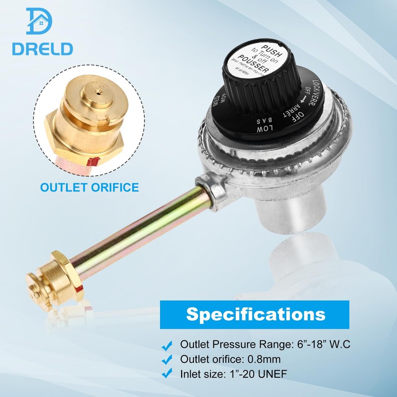 - 【Useful Function】Tru-Infrared regulator valve, specially designed for 1lb tanks. It features a standard propane gas grill control valve with an inlet size of 1"-20 UNEF. Perfect for table-top grills, this regulator has an outlet orifice size of 0.8mm. With an outlet pressure range of 6"-18" W.C, it provides efficient and controlled gas flow for all your grilling needs.