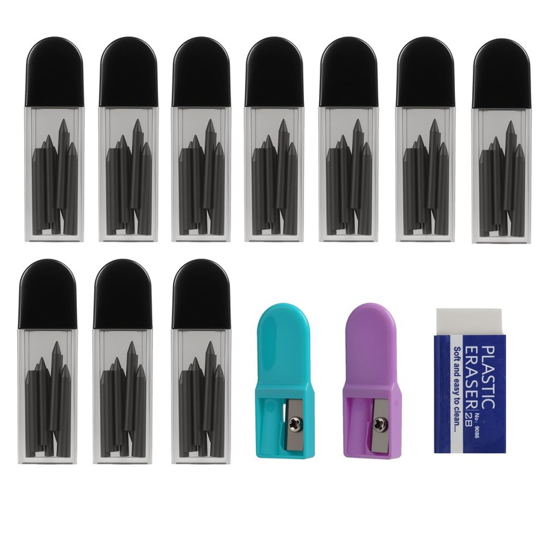 • The compass lead set contains 100 high-quality 2B refills in 10 clear boxes, along with 2 pencil sharpeners and 1 eraser for daily use.