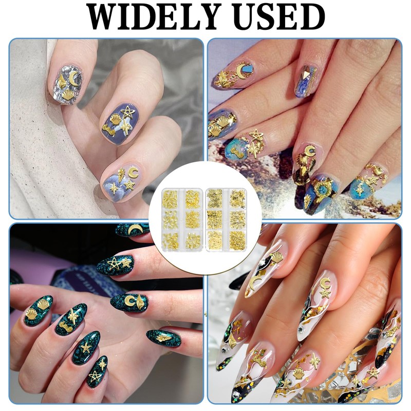 - 【Material】Our gold nail charms are designed by professional factories with good craftsmanship. Our products are made of quality metal that will not irritate the skin and can be used to decorate your nails. This two-box set contains 12 charming ocean-themed designs such as starfish, shells, conchs, stars and moons, which are great for creating summer nail charms full of seaside style. Use this nail art accessory to create a different manicure.