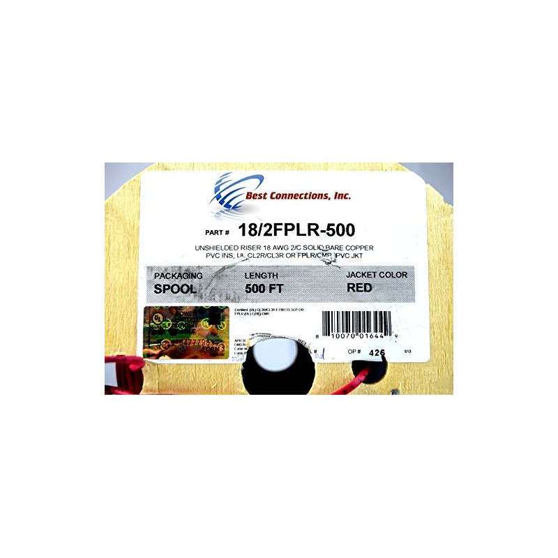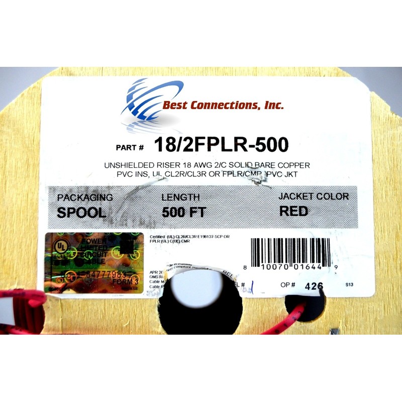 2C/18 AWG SOLID COPPER RED FIRE ALARM WIRE SECURITY CABLE FPLR PVC 500 FT UL