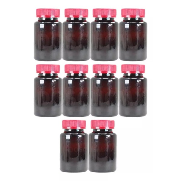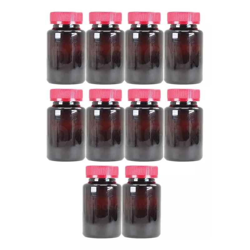 2CLIC.MX 10 Frasco Bote Capsulero Ambar 150 Ml Tapa Roja Capsulas
