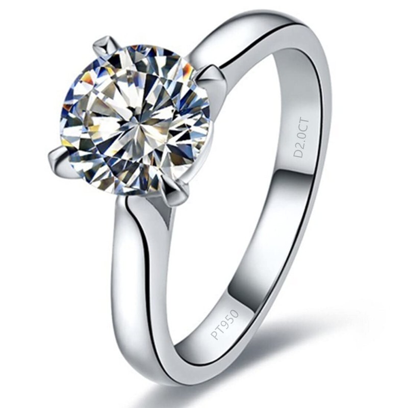 2CT Brand Jewelry Classic Prongs Setting NSCD Simulate Diamond Ring Engagement Solitaire Round Rings for Women