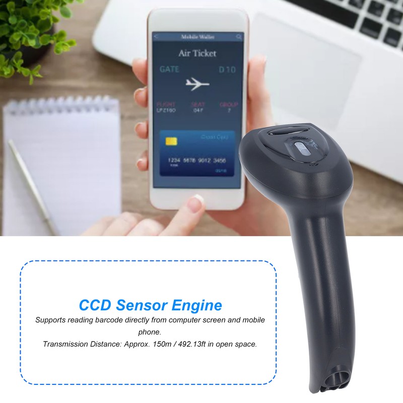 1、Wide Matching: Support for Android or for Windows devices with USB interface, using highly sensitive CMOS sensor engine. 2、Simpler Works: With USB receiver and USB cable for 2.4GHz wireless connection and USB connection, and the auto matching needs no drivers. 3、Better Design: Instant upload mode and storage mode. Internal offline storage can store up to 4,000 barcode data in offline storage mode. Scan and store barcodes when you are away from the receiver, and update the data to your device when you are back in wireless range. 4、Practical Use: Allows for wide application in supermarket, pharmacy, logistics, express delivery, retail store and so on, very practical. 5、Fast Scanning: Our scanner can read barcodes quickly and accurately, save time and improve productivity with our high‑performance barcode scanner.