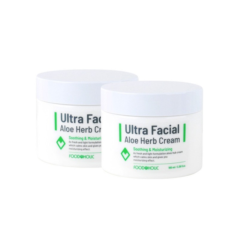 (2ea) Foodaholic Ultra Facial Aloe Herb Cream 100ml/Moisture Cream, Hypoallergenic, Highly Moisturizing, Wrinkle-Improving