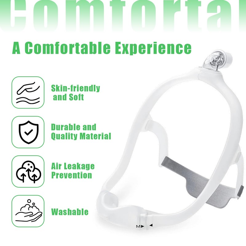 - 【Weich und bequem】CPAP-Nasenmaske mit Kopfband ist aus weichem Qualitätsmaterial hergestellt. Seine dehnbare und glatte Innenfläche wird Ihre CPAP-Nasenkissenmaske an Ort und Stelle halten. Das p30i cpap Kopfband & Maske passt sich den Konturen des Gesichts an, ohne Einbuchtungen oder Irritationen zu verursachen.
