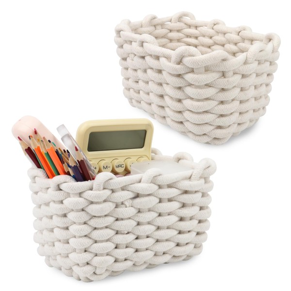2er Set Aufbewahrungskorb Geflochten Baumwolle Strickkorb, Korb Baumwollseil Geflochten,Klein Körbchen Aufbewahrungskorb Badezimmer, Korb Aufbewahrung Geflochten, für Kinderzimmer, Bad, Schränke