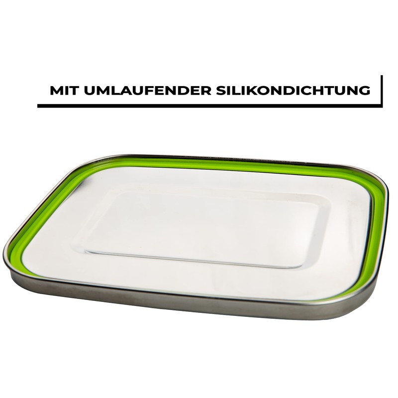 - "Compact size, large capacity" - With a size of 20 x 14 x 6 cm and a capacity of 1 litre, this lunch box is the perfect choice for on the go. Thanks to the integrated silicone sealing rings in the lid, everything stays in place and is safely transported.