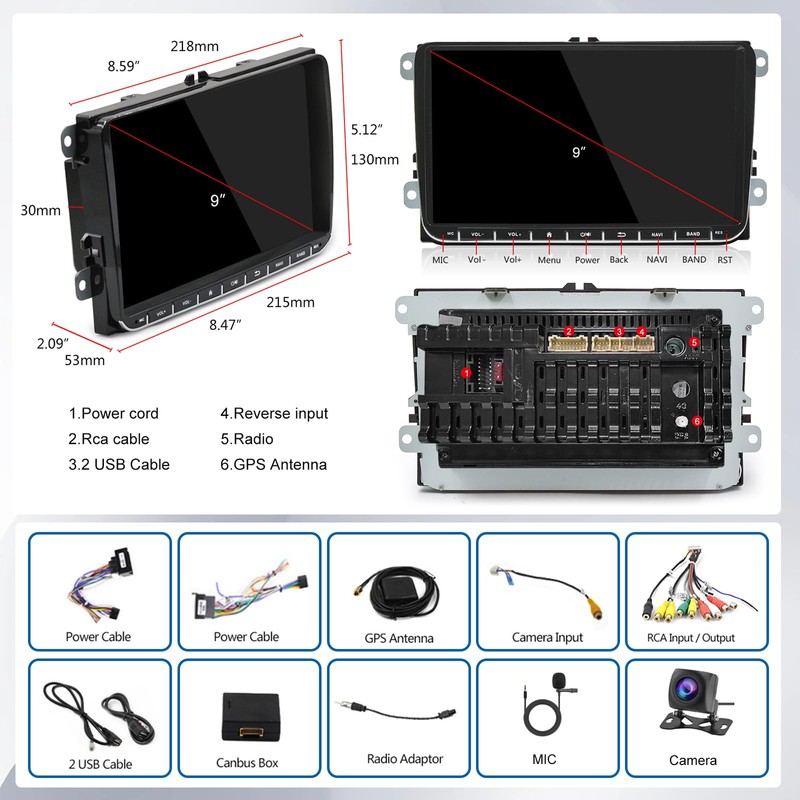 • 【Android Car Radio for VW 】Android car stereo carplay Compatible Vehicles: Fit for VW Volkswagen Seat Golf Passat Jetta Beetle Tiguan Touran EOS. Carplay stereo equipped with 2GB RAM + 64GB ROM, 9 inch Touch screen, enjoy HD colorful pictures. Support GPS/WiFi, 2 Spilt Screen, colorful UI, 2 USB adapter input etc. We offer 30-day Money-Back, 12-month Replacement, life-time Technical Support.