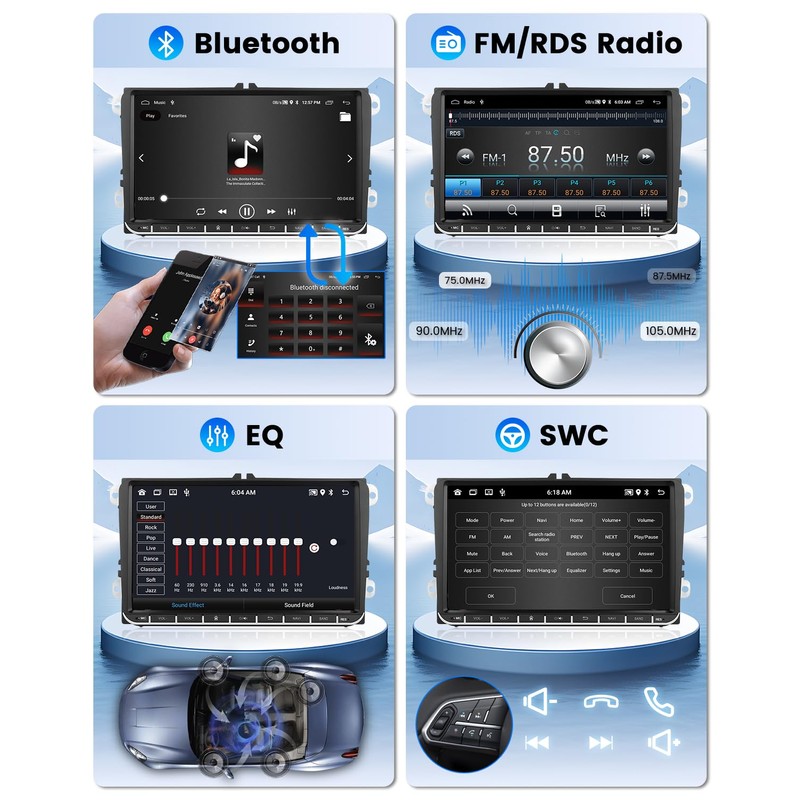 • 【Blueotooth & FM & HiFi】Android car stereo for VW Tiguan support Bluetooth hands-free call, Bluetooth music playback, automatic loading of the phone book. Support FM to transfer music to the car stereo system, Clear channel search and low noise, and preset 18 stations. And comes with High fidelity, reproduced sound highly similar to your original sound