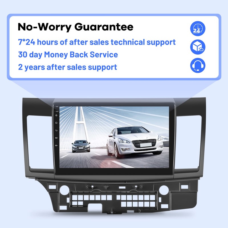 - 【Hi-Fi Audio, GPS Navigation, WiFi Hotspot】Hi-Fi audio makes the playback of the played songs highly similar to the original sound, which can perfectly reproduce the voice of your favorite singer. The Mitsubishi Lancer stereo has GPS navigation that allows you to use online/offline maps. Through WiFi/Hotspot connection, you can also download apps from play store, such as YouTube, Tiktok, Spotify, etc, which can enrich your car life.