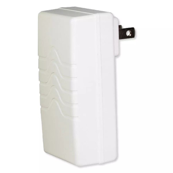 The 2GIG Replacement AC1 Power Supply is a high-efficiency switching power supply for various 2GIG devices without DC receptacles. It provides 120 VAC at 60 Hz input, and 14 VDC at 1700 mA output. There are screw terminals for wiring to the 2GIG Go!Control Panel, and a retaining bracket is included to hold the power supply in place when plugged into a standard or Decora-style power outlet.