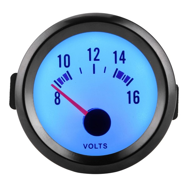 2in Pointer Voltage Gauge 8‑16V Measurement Range High Accuracy Blue LED Voltmeter Universal