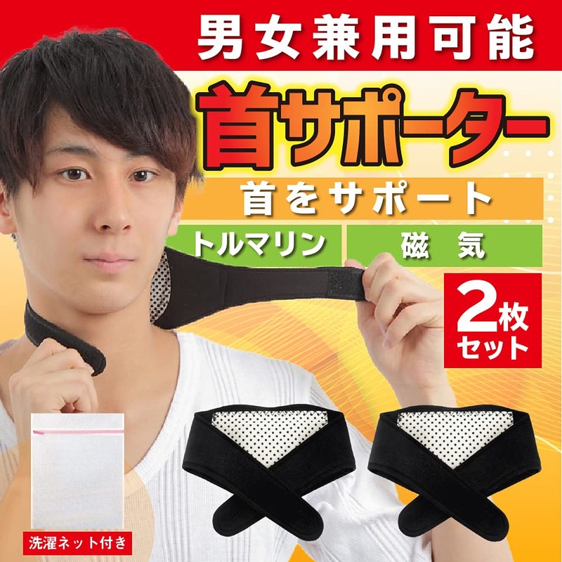 2key Neck Supporter, Neck Warmer, One Size Fits Most, Black, Tourmaline, Magnet, Unisex, Set of 2, Laundry Net Included