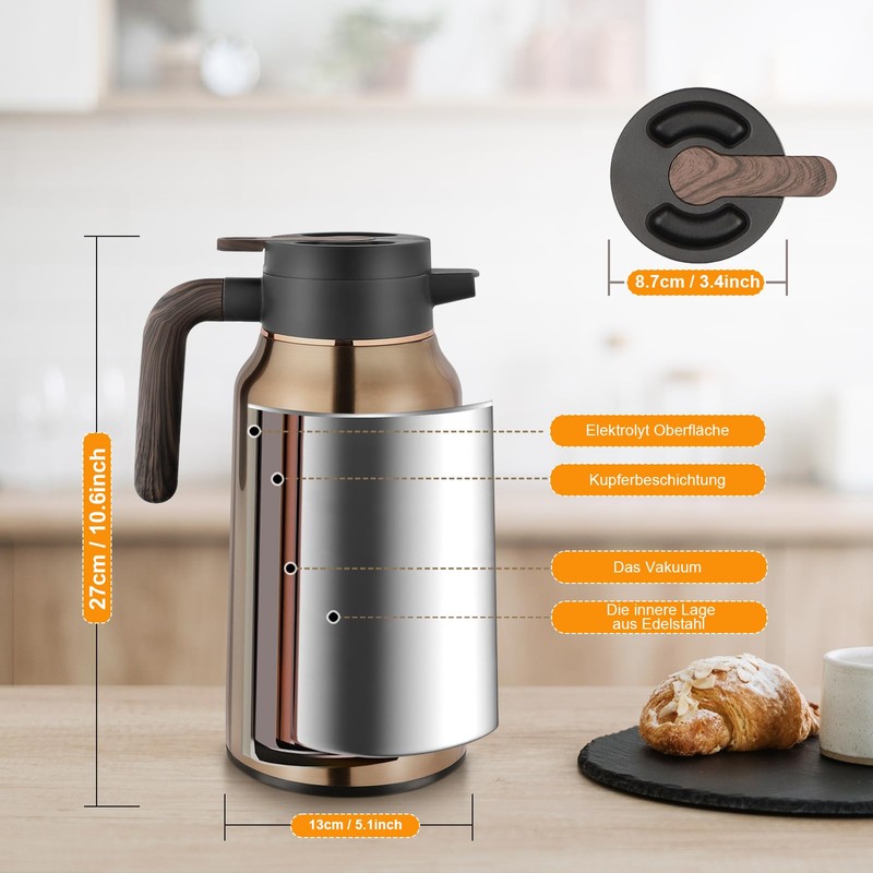 - Premium stainless steel and durable: Made of high-quality stainless steel, this thermal carafe is thicker and more durable than ordinary coffee pots. The leak-proof lid with a food grade silicone ring ensures a secure seal.