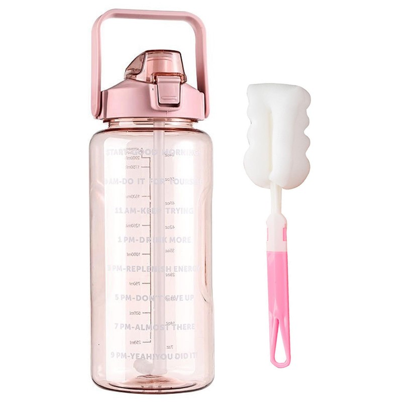 - 【Package Included】You will receive a 2L sports water bottle and a cup brush, the 70oz capacity BPA-free bottle size is 30.5x11cm. Made of PC, PP and silicone, it can withstand temperatures from -20 to 100° and meet daily drinking water needs. It’s a sustainable choice for daily use.