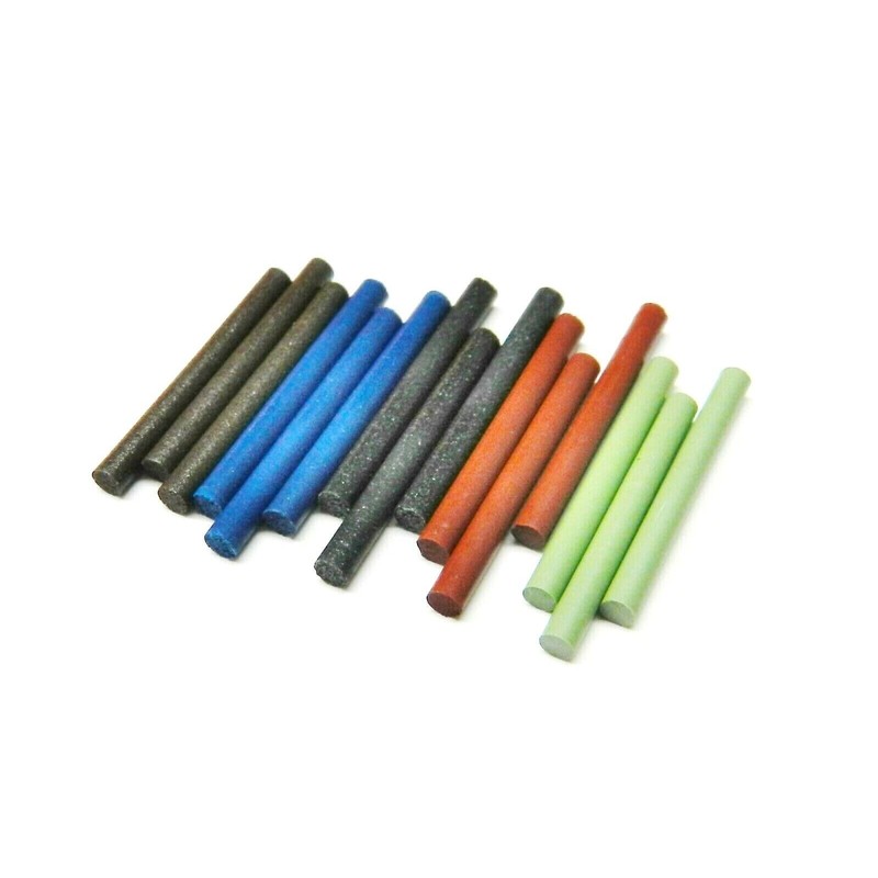 🟢 Silicone Rubber polishing pins assortment pack of all 5 Grades, the set includes 3 pieces of each of the 5 grits, a total of 15 - 2mm diameter Pins along with a Mini Chuck Mandrel included.
