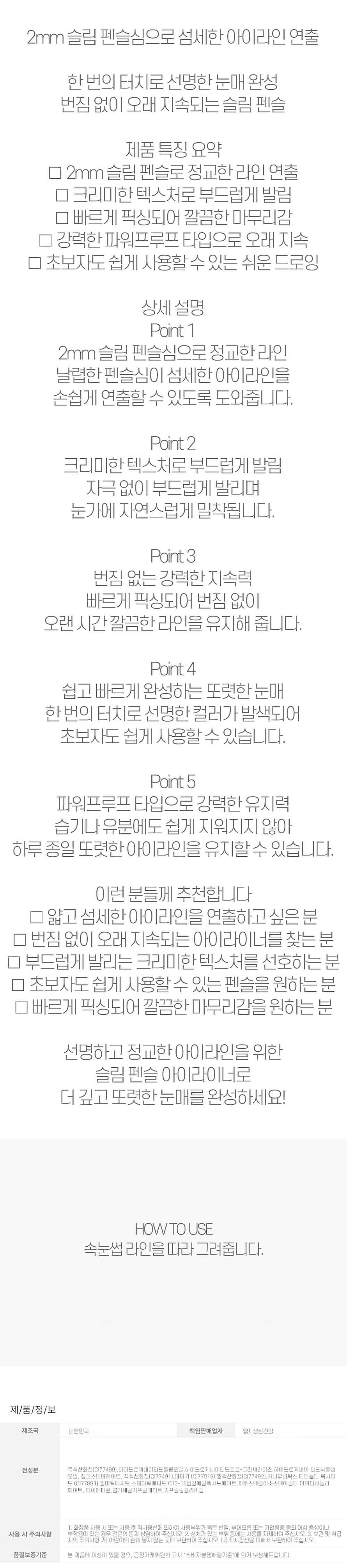 2mm 슬림 펜슬심 아이라인 연출 라이너 1호 블랙