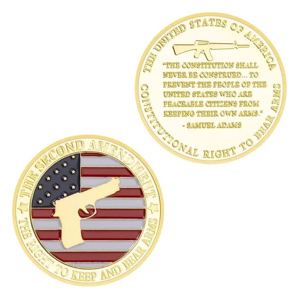 - Celebrate the Second Amendment with this beautiful challenge coin. Measures 1.6 inches wide.