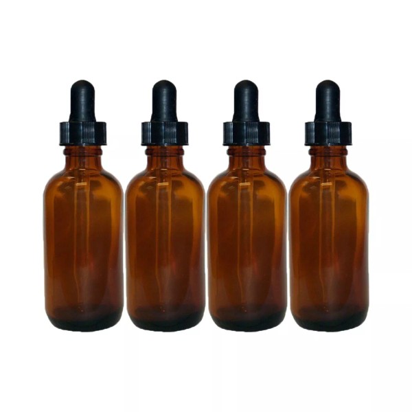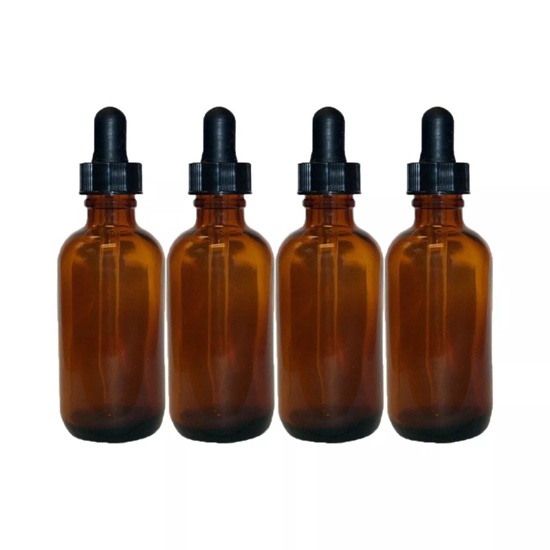 2oz Amber Glass Bottles for Essential Oils with Glass Eye Dropper - Pack of 4