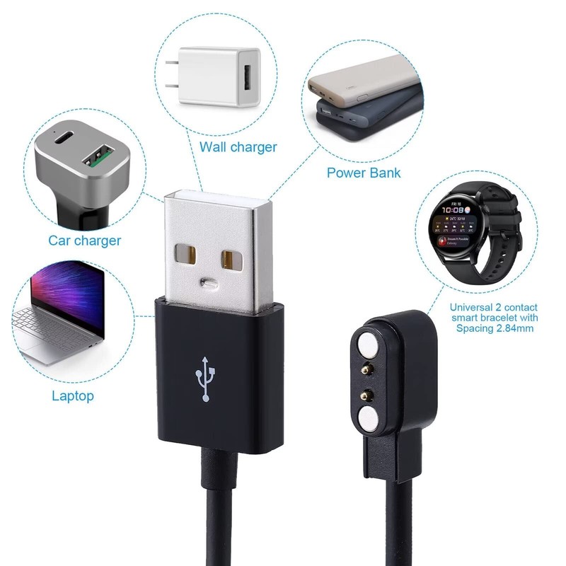 2Pack 2-Pin Universal USB Data Charging Cable Magnetic Charger Compatible with Willful IP68/SW021/SW025/SW01/SW023/ID205U/Umidigi Uwatch 3 Sport Watch Magnetic Charger Power Supply Wire Dock Stand
