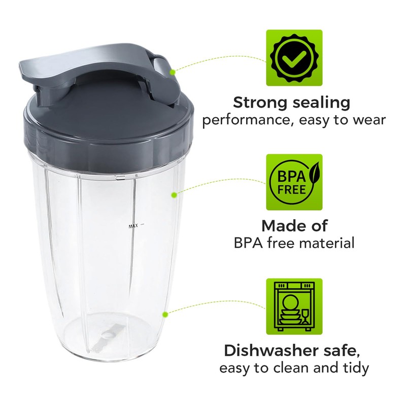 • 【Compatible With】The 24 oz replacement blender cup compatible with the NutriBullet 600W and NutriBullet 900 WBlender. NOT Compatible with NutriBullet NB50100C Pro 1000, NutriBullet ZNBF30400ZC Blender (1200W), RX (1700 watts), Magic Bullet or Nutri Ninja blenders.