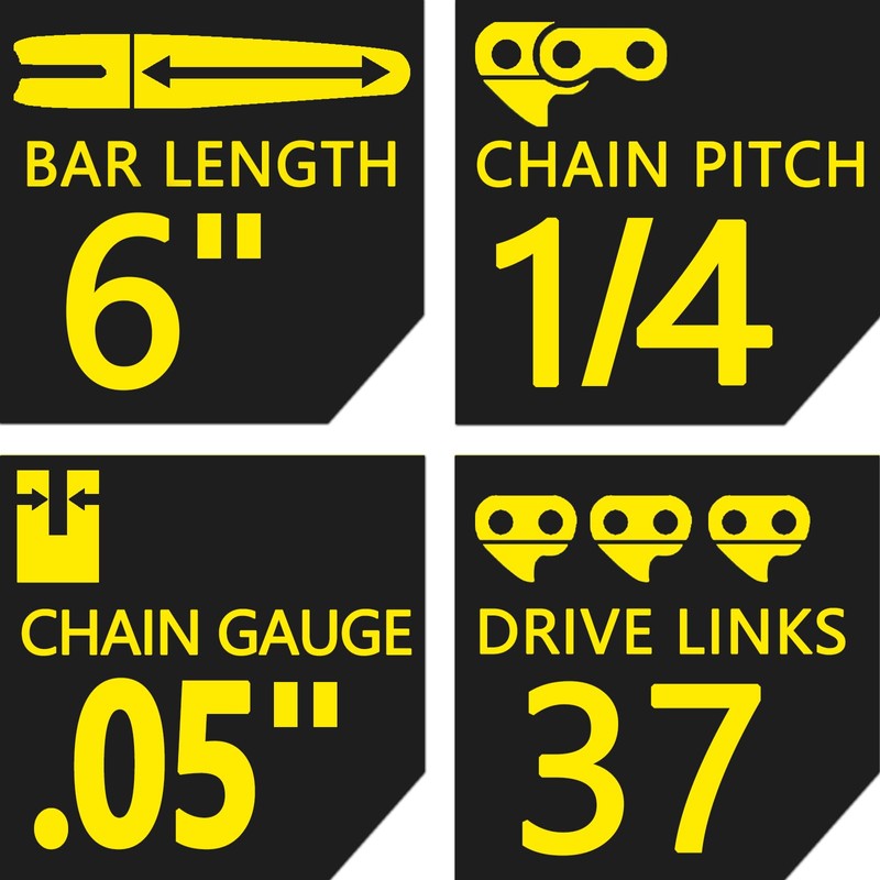 - 2 PIECES 6 INCH MINI CHAINSAWS CHAIN: 37 Drive Links, 1/4 mini 6 inch chains suitable for all 6-inch mini chainsaws on the market.Fits for 6-Inch Mini Rechargeable Cordless Electric Chainsaw, miniature chainsaw, 6 inch mini wood cutting lithium chainsaw., original chain of rechargeable chainsaw 6 inches accessories.(Package: Only 2 chains are in one package! Does not include the 6-inch guide!)