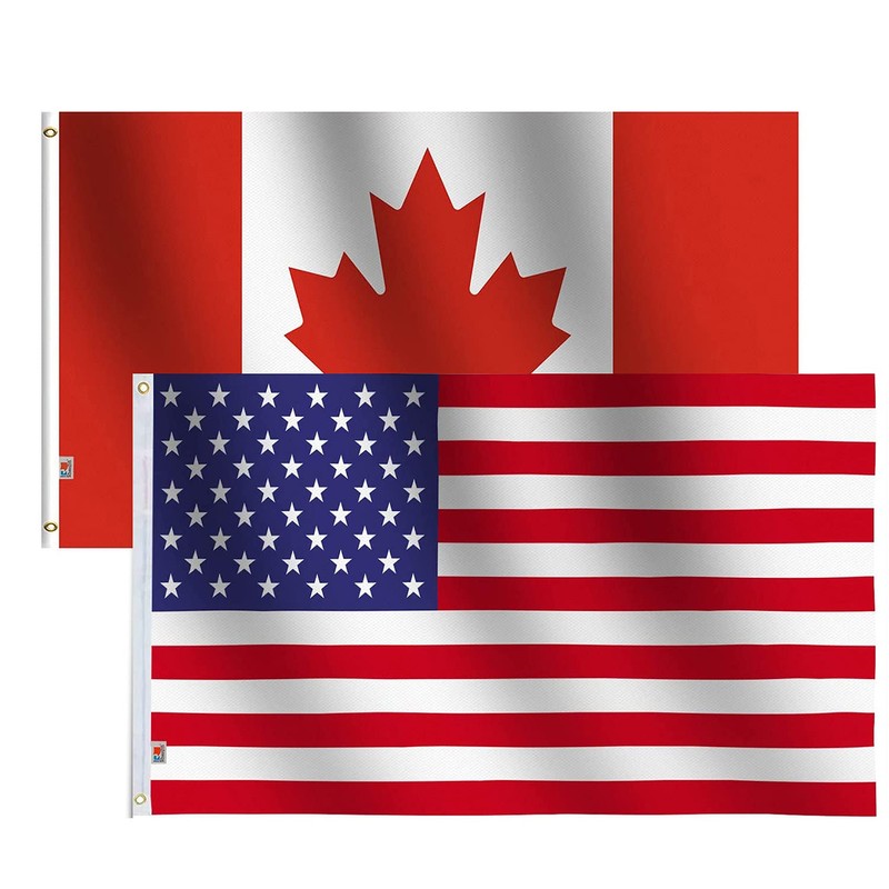 2Pack American&Canada Flag 3x5 Ft. Printed Stars and Stripes USA Candian Flags With Brass Grommets CA US Flag All Weather Outdoors Indoors Banner