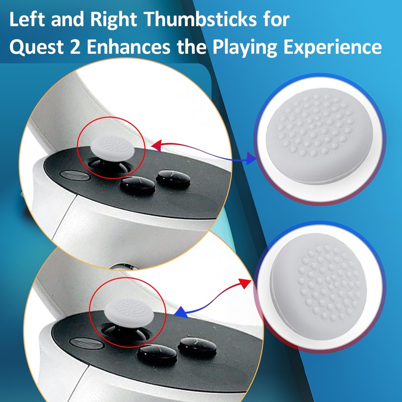 - Thumbstick and Set Tools: Come with 2PCS-White Quest 2 thumbstick cap replacement. Good replacement for your broken or cracked joystick thumbstick.This thumb stick replacement will help you to improve your playing experience. And it comes with set tool:Screwdriver、Pry Tool、Opening Tools and Tweezer. Helps to disassemble and install more convenient.