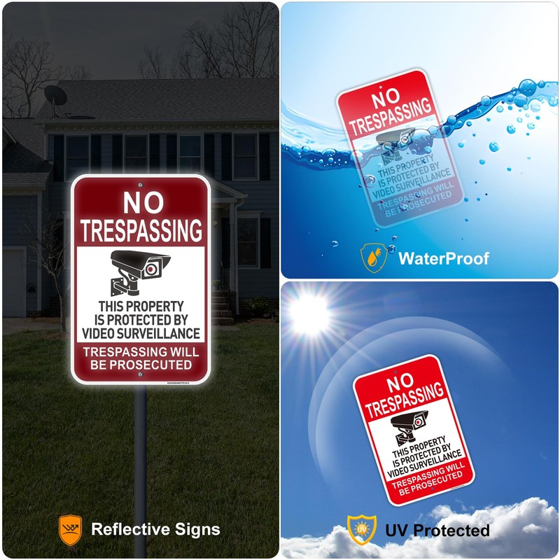 2Pack Large Video Surveillance Signs, 18"x12" No Trespassing Sign, Private Property Sign, Engineer Grade Rust Free Reflective Aluminum, Fade/Weather Resistant, UV Protected, Easy to Install