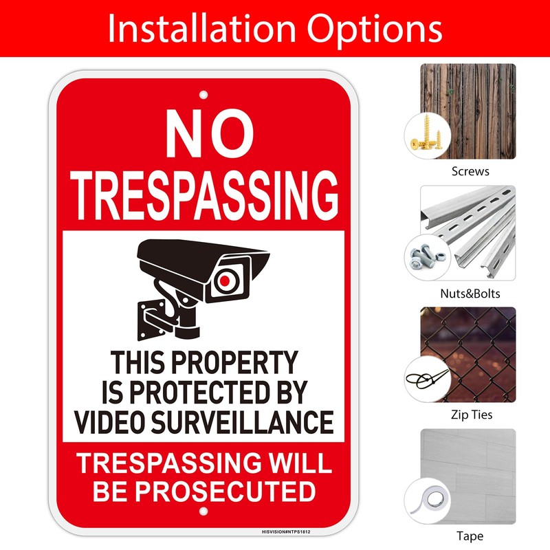 - Easy to Install: Private property signs have two pre-drilled holes, can be mounted with screws, nails, zip ties or tape, easy to install on a variety of surfaces including walls, fences, poles and gates.