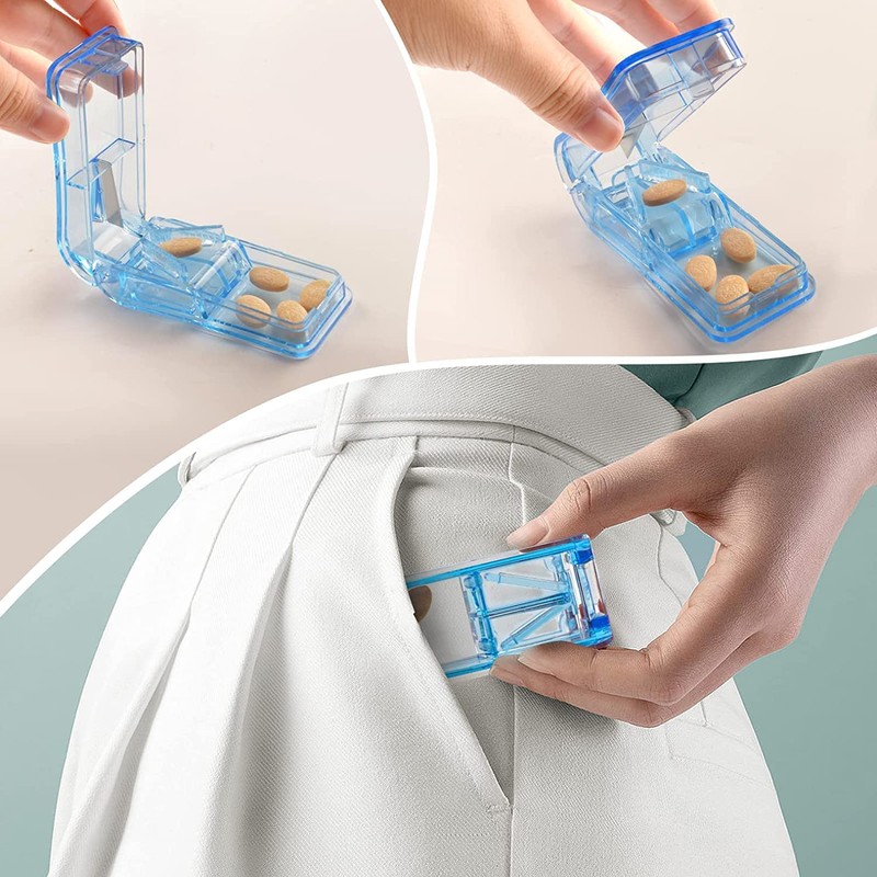- 【2-in-1 Pill Cutter】2-in-1 is used for storage and cutting. There is a small compartment in the box where you can take certain medicines or supplements.