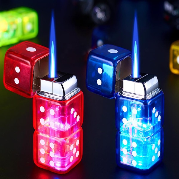 2PACK Red Blue Windproof Flame Adjustable Lighter,Cool,Jet Torch Flame Lighters,Butane Refillable Torch,BBQ Candles Camping (No Butane Fuel)
