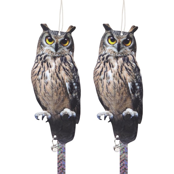 OffiCreative 2Pack Reflective Fake Owls Hanging Decoration Garden Owls Scarer Devices with Reflective Tape to Keep Pigeon from Windows Tree