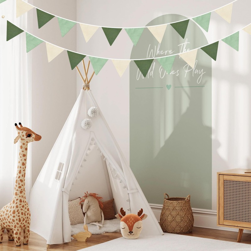 - MATERIAL: Our sage green hand made pennant banner made of strong weatherproof cotton, each set of products comes with a cloth bag for storage, washable and reusable for many times, soft and comfortable touch with different fresh and lively colors, which will attract the attention of boys and girls.