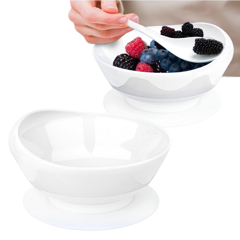 2Pack Spill Proof Scoop Bowl with Non-Skid Suction Base, Adaptive Self-Feeding Dinnerware for Elderly and Disabled(White)