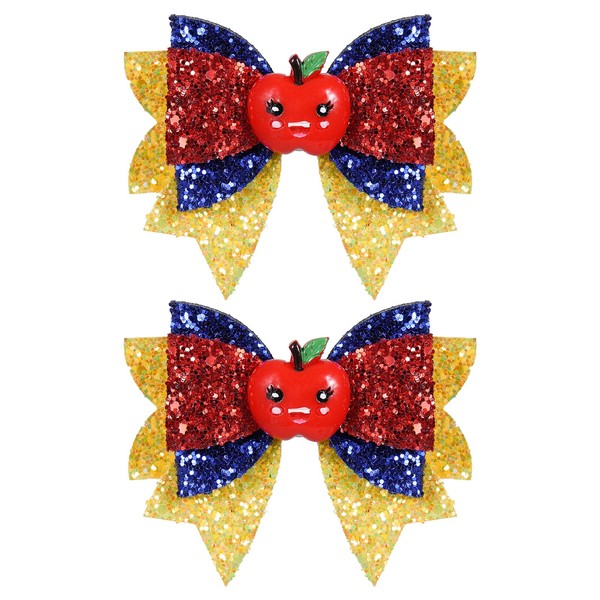 2 Pack 3.5in Glittery Sparkling Yellow Red Blue Back to School Hair Bow Clips, Cute Handmade Apple Pigtail Bow-Knot Alligator Barrettes Hairpins for School Girls,Toddlers, Teens,Kids Children First Day School uniform Dress outfits Decoration Accessories Gifts