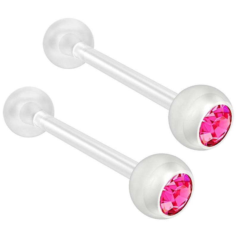 2pc Bioflex Tongue Bar Rings 14g 1.6mm Crystal Rose Pink Ball Gem Flexible Bioplast Bendable Initial Piercings