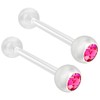 2pc Bioflex Tongue Bar Rings 14g 1.6mm Crystal Rose Pink Ball Gem Flexible Bioplast Bendable Initial Piercings