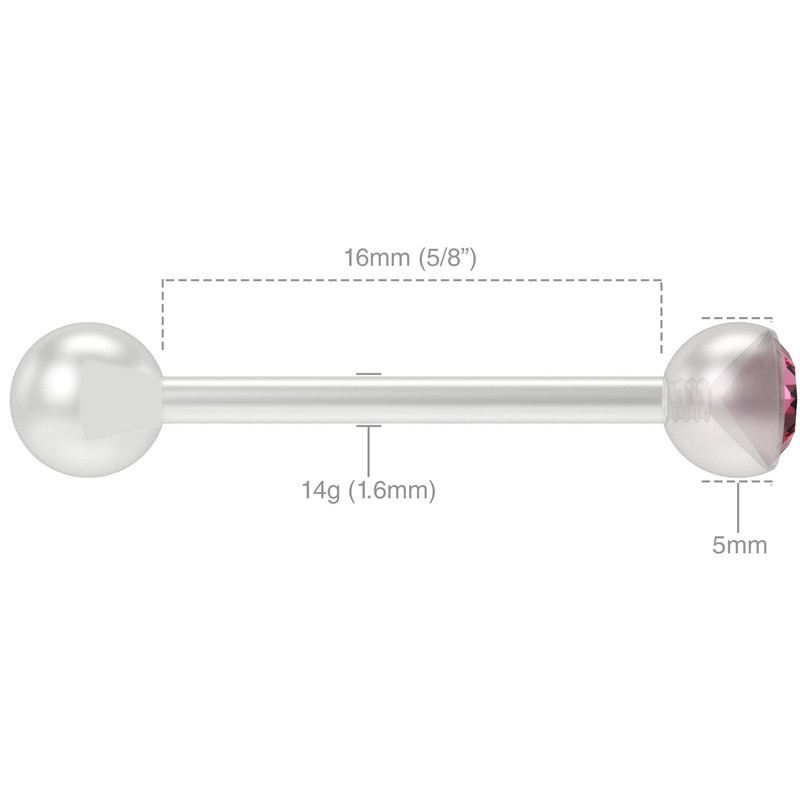 - SPECIFICATIONS - Crystal: 2 x Rose Crystal gems that sparkle, glitter and are cute and pretty (no fogginess). Length: 16mm. Gauge: 14g. Ball End: Ball 5mm. These bioplast tongue ring are designed and tested for quality. Get the most out of your piercing w