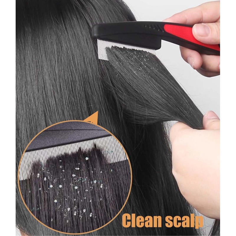- Scalp cleaning comb features a comfortable handle that provides a secure grip and is specifically designed to alleviate dandruff and scalp. Scalp comb effectively reduces dandruff and let your scalp feeling comfortable. Cleaning the lice comb is also very convenient. You can use warm water or wet wipes to clean it, effortlessly maintaining its cleanliness. If a thorough cleaning is needed, simply rinse the psoriasis comb with water and let it air dry.