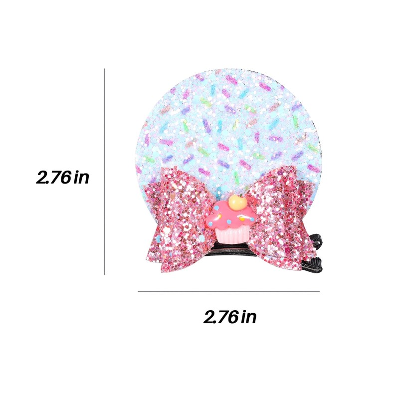 Glittery Confetti Mouse Ear Design: Very cute and well hand-made cartoon character inspired hair bow clips, features sparkling confetti‑sprinkle detail on mini mouse ears for an irresistible shine; perfect for creating standout birthday party looks!