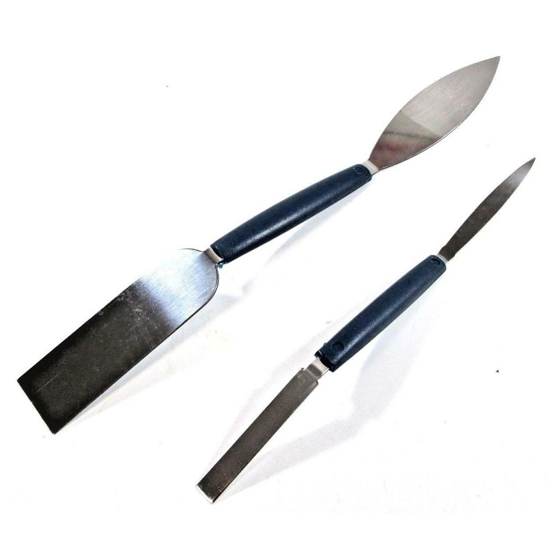 Made from Stainless Steel for added longevity. A durable and flexible. For intricate work when plastering and essential for filling and touching in plaster work. Each set consists of one large and one small tool. Large Tool : 254mm x 26mm (10" x 1 1/32") approx Small Tool: 192mm x 8mm (7 9/16" x 5/16") approx