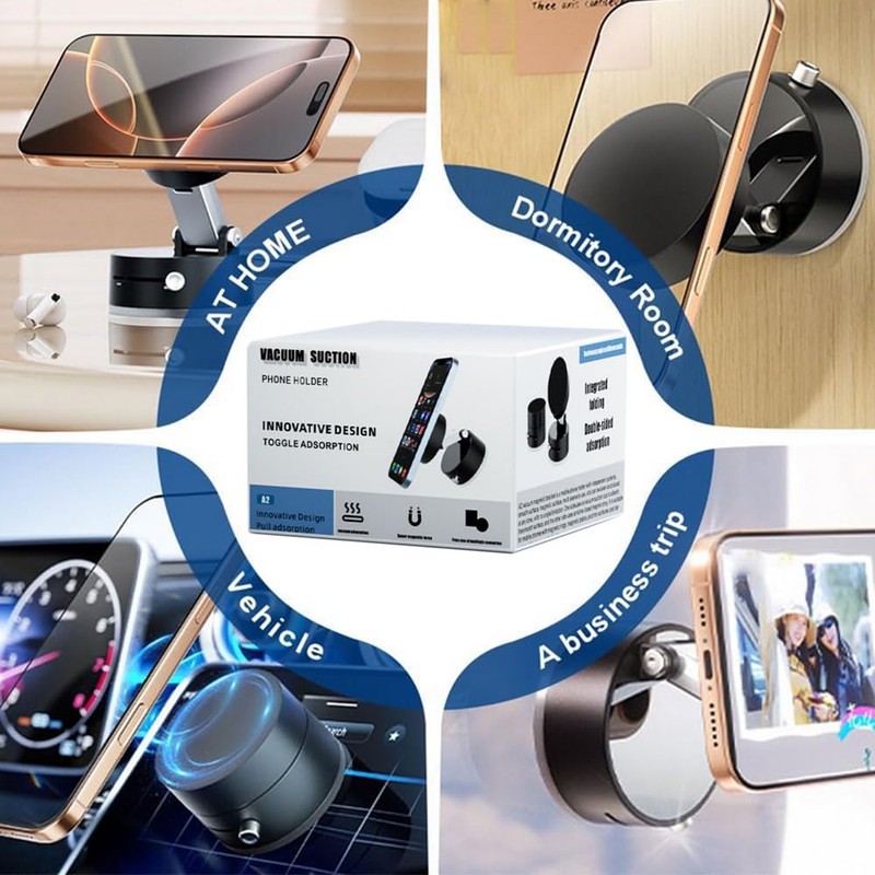 - 【Multi scenario use】This magnetic phone holder is suitable for most scenarios. The vacuum adsorption surface can securely and firmly attach your phone to any smooth surface, such as car displays, mirrors, smooth tiles, glass, acrylic, marble, and smooth stainless steel surfaces.