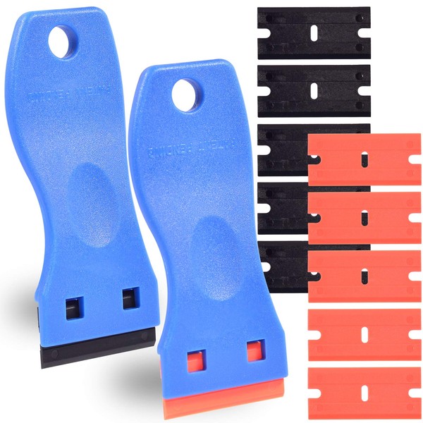 - 🔎DIFFERENT COLOR OF BLADES PACKAGE - 2 plastic scrapers, 5 orange plastic razor blade, 5 black plastic razor blade